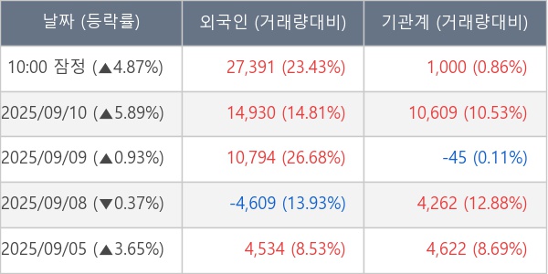[장중수급포착] 삼화전기, 외국인/기관 동시 순매수… 주가 +4.87%