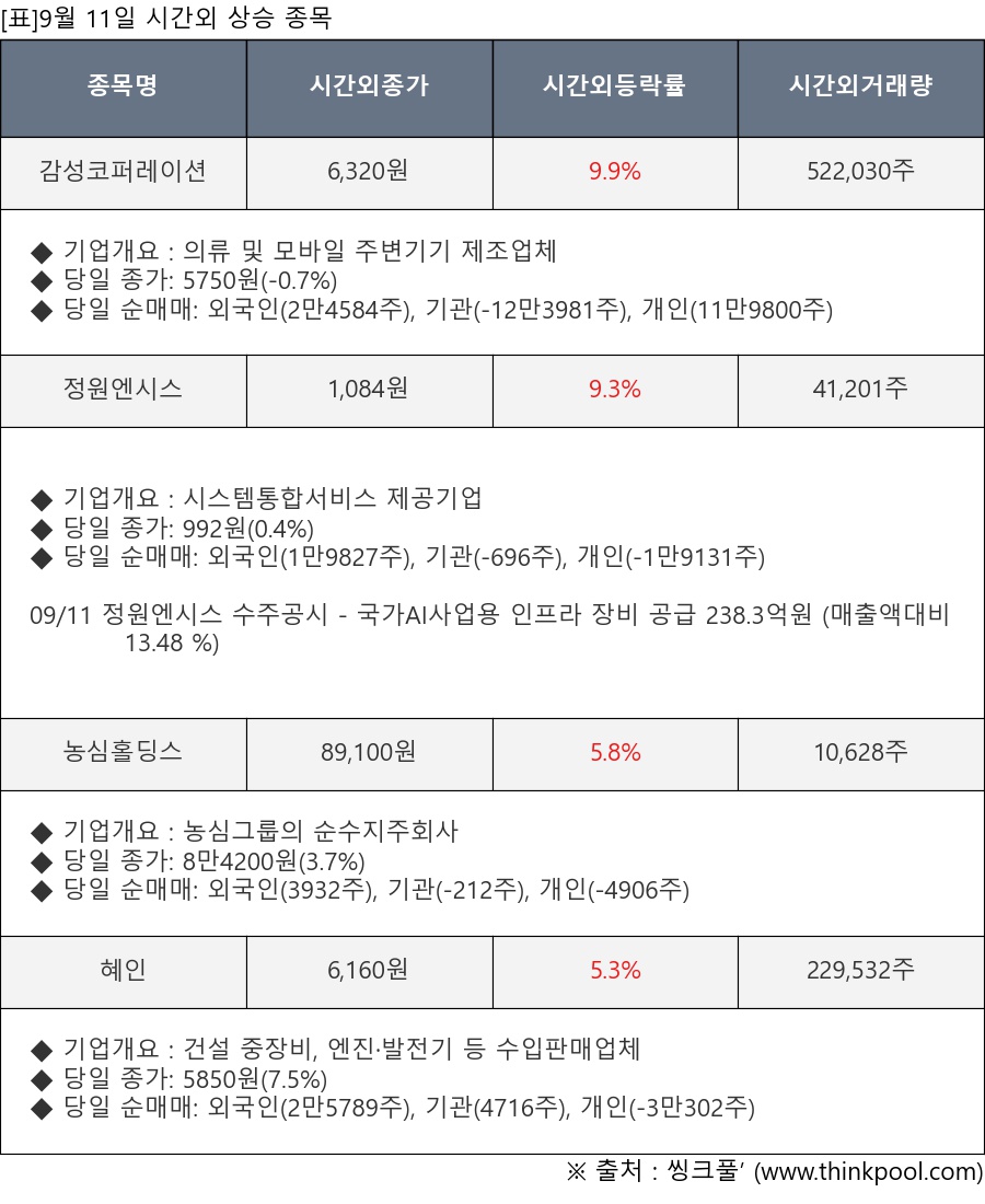 ※ 관련 종목: 감성코퍼레이션, 정원엔시스, 농심홀딩스, 혜인