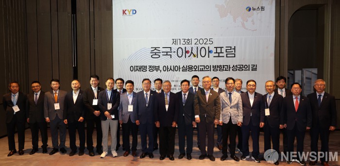 [서울=뉴스핌] 정일구 기자 = 민병복 뉴스핌 회장과 김태년 한중의원연맹회장 등 내빈들이 12일 오전 서울 여의도 페어몬트호텔 그랜드볼룸에서 종합뉴스통신사 뉴스핌 주최로 열린 제13회 2025 중국·아시아 포럼에서 기념촬영을 하고 있다. '이재명 정부, 아시아 실용외교의 방향과 성공의 길'을 주제로 열린 이번 포럼은 중국, 일본, 인도, 베트남 등 아시아 국가들과의 경제·문화 협력 상황을 점검하고 발전 방안을 찾기 위해 마련됐다. 2025.09.12 mironj19@newspim.com
