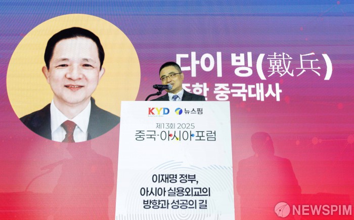 [서울=뉴스핌] 윤창빈 기자 = 팡쿤 주한중국부대사가 12일 오전 서울 여의도 페어몬트호텔 그랜드볼룸에서 종합뉴스통신사 뉴스핌 주최로 열린 제13회 2025 중국·아시아 포럼에서 다이빙 주한중국대사의 축사를 대독 하고 있다. '이재명 정부, 아시아 실용외교의 방향과 성공의 길'을 주제로 열린 이번 포럼은 중국, 일본, 인도, 베트남 등 아시아 국가들과의 경제·문화 협력 상황을 점검하고 발전 방안을 찾기 위해 마련됐다. 2025.09.12 pangbin@newspim.com
