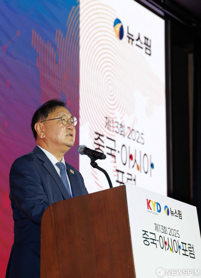 [서울=뉴스핌] 윤창빈 기자 = 김태년 한중의원연맹 회장이 12일 오전 서울 여의도 페어몬트호텔 그랜드볼룸에서 종합뉴스통신사 뉴스핌 주최로 열린 제13회 2025 중국·아시아 포럼에서 축사를 하고 있다. '이재명 정부, 아시아 실용외교의 방향과 성공의 길'을 주제로 열린 이번 포럼은 중국, 일본, 인도, 베트남 등 아시아 국가들과의 경제·문화 협력 상황을 점검하고 발전 방안을 찾기 위해 마련됐다. 2025.09.12 pangbin@newspim.com
