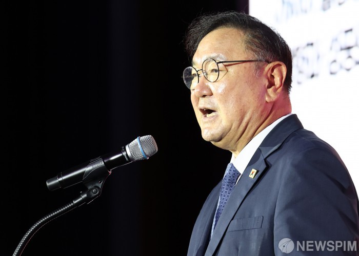 [서울=뉴스핌] 최지환 기자 = 한중의원연맹회장인 김태년 더불어민주당 의원이 12일 오전 서울 여의도 페어몬트호텔에서 열린 제13회 2025 중국-아시아 포럼에서 축사를 하고 있다. 이번 포럼은 '이재명 정부, 아시아 실용외교의 방향과 성공의 길'을 주제로 중국, 일본, 인도, 베트남 등 아시아 국가들과의 경제, 문화 협력 상황을 점검하고 발전 방안을 찾는다. 2025.09.12 choipix16@newspim.com