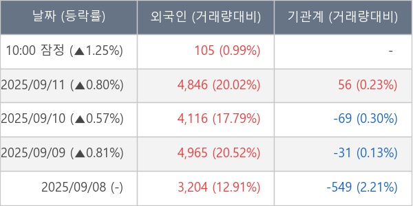[표] 외국인ㆍ기관 순매매량 (단위 주)