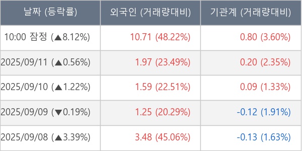 [표] 외국인ㆍ기관 순매매량 (단위 만주)