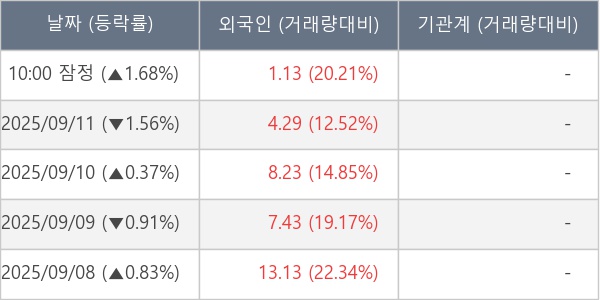 [표] 외국인ㆍ기관 순매매량 (단위 만주)