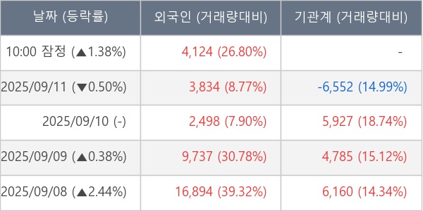 [표] 외국인ㆍ기관 순매매량 (단위 주)
