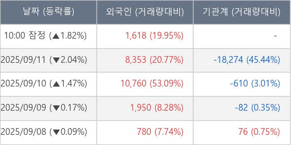 [표] 외국인ㆍ기관 순매매량 (단위 주)
