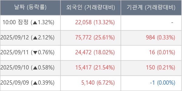 [표] 외국인ㆍ기관 순매매량 (단위 주)