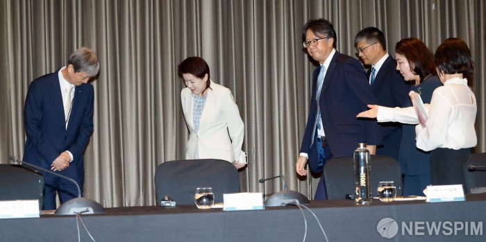 [서울=뉴스핌] 류기찬 기자 = 이찬진 금융감독원장(왼쪽)이 15일 오전 서울 영등포구 콘래드 서울에서 열린 '금융감독원장-외국계 금융회사 CEO 간담회'앞서 참석자들과 인사를 나누고 있다. 2025.09.15 ryuchan0925@newspim.com