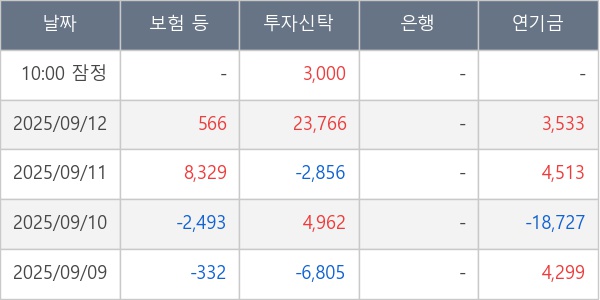 ※ 장중 매매동향은 잠정치이므로 실제 매매동향과 차이가 발생할수 있음