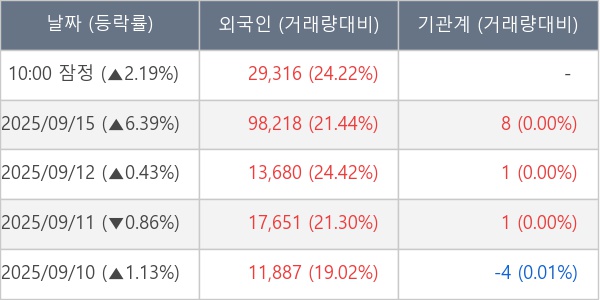 [표] 외국인ㆍ기관 순매매량 (단위 주)