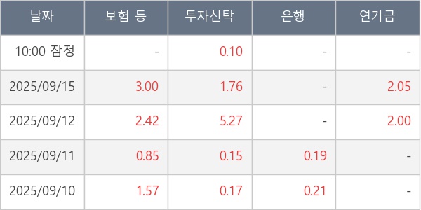 [표] 주요 기관별 순매매량 (단위 만주)