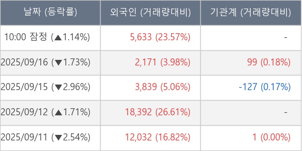 [표] 외국인ㆍ기관 순매매량 (단위 주)