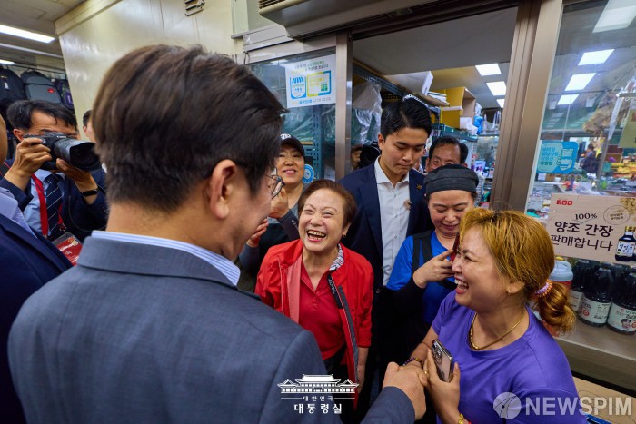 이재명 대통령, 전통시장 찾아 시민과 인사