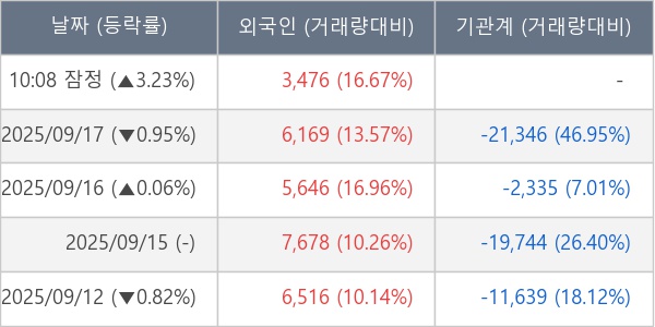 [표] 외국인ㆍ기관 순매매량 (단위 주)