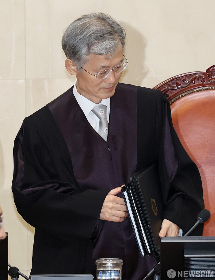[서울=뉴스핌] 정일구 기자 = 조희대 대법원장이 18일 오후 서울 서초구 대법원 대법정에서 열린 전원합의체 선고에 입장하고 있다. 2025.09.18 mironj19@newspim.com