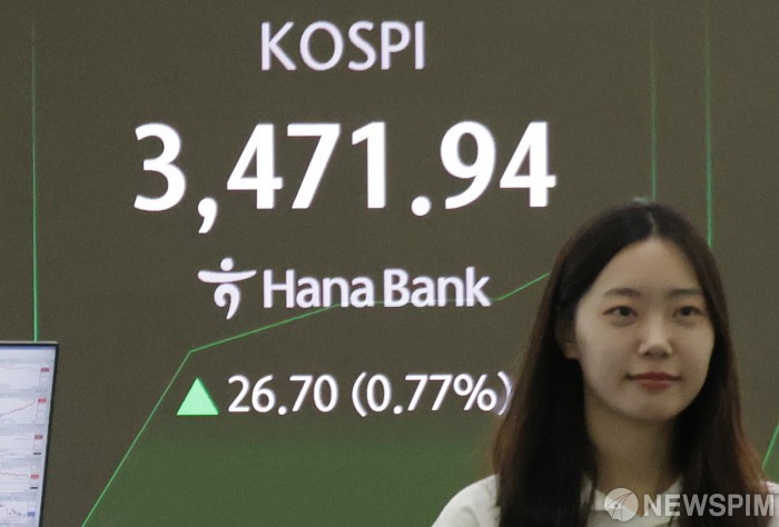 [서울=뉴스핌] 양윤모 기자 = 22일 오전 코스피가 전장 종가보다 26.70 포인트(0.77%) 상승하며 3471.94로, 코스닥은 6.35 포인트(0.74%) 상승한 869.46으로 장을 시작한 가운데, 서울 중구 하나은행 딜링룸에서 직원들이 업무를 보고 있다. 서울외환시장에서 원·달러 환율은 전장 대비 4.10원 상승한 1397.70원에 거래를 시작했다. 2025.09.22 yym58@newspim.com