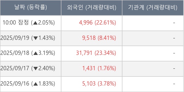 [표] 외국인ㆍ기관 순매매량 (단위 주)