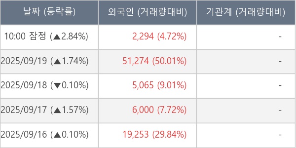 [표] 외국인ㆍ기관 순매매량 (단위 주)