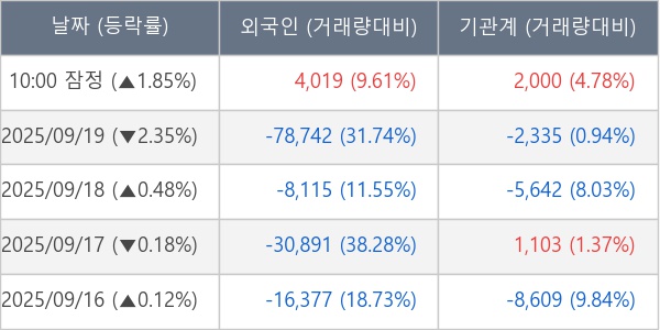 [표] 주요 기관별 순매매량 (단위 주)