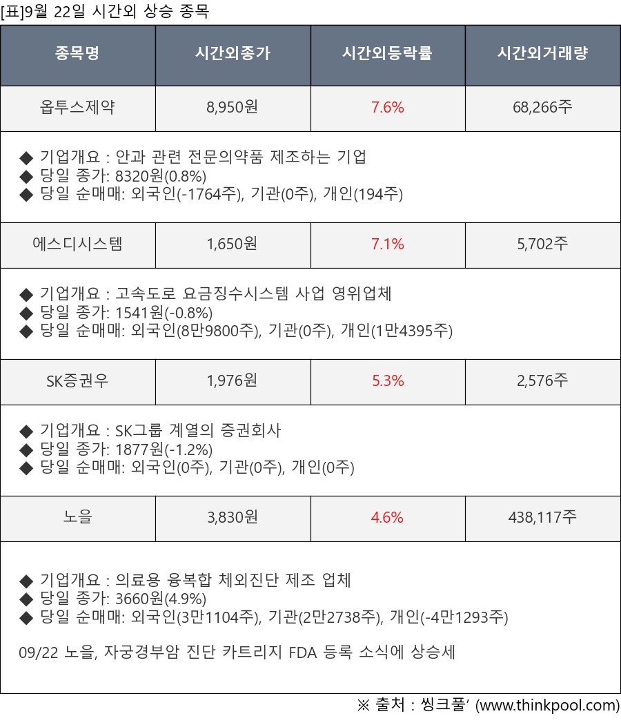 ※ 관련 종목: 옵투스제약, 에스디시스템, SK증권우, 노을