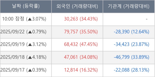 [표] 외국인ㆍ기관 순매매량 (단위 주)