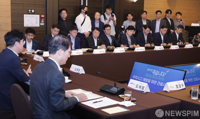 [서울=뉴스핌] 양윤모 기자 =김영훈 고용노동부 장관이 23일 오후 서울 중구 로얄호텔에서 주요 20대 건설사 대표이사들과 전체 건설업 사망사고의 약 60%를 차지하는 추락사고 예방을 위한 간담회를 개최 했다. 행사에는 삼성물산, 현대건설, 대우건설, 디엘이앤씨, GS건설, 현대엔지니어링, 포스코이앤씨, 롯데건설, SK에코플랜트, HDC현대산업개발, 한화, 호반건설, 디엘건설, 두산에너빌리티, 계룡건설산업, 서희건설, 제일건설, 코오롱글로벌, 태영건설, KCC건설 대표이사 등이 참석했다. 2025.09.23 yym58@newspim.com