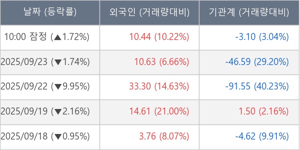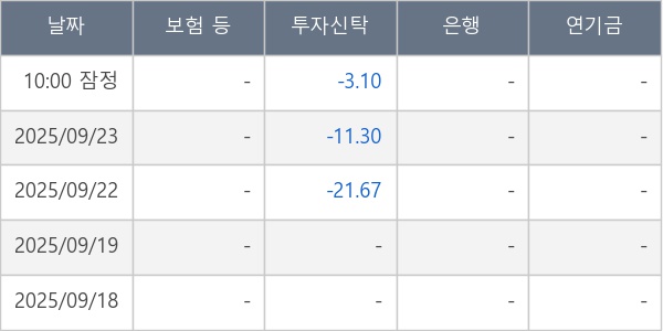 [표] 주요 기관별 순매매량 (단위 만주)