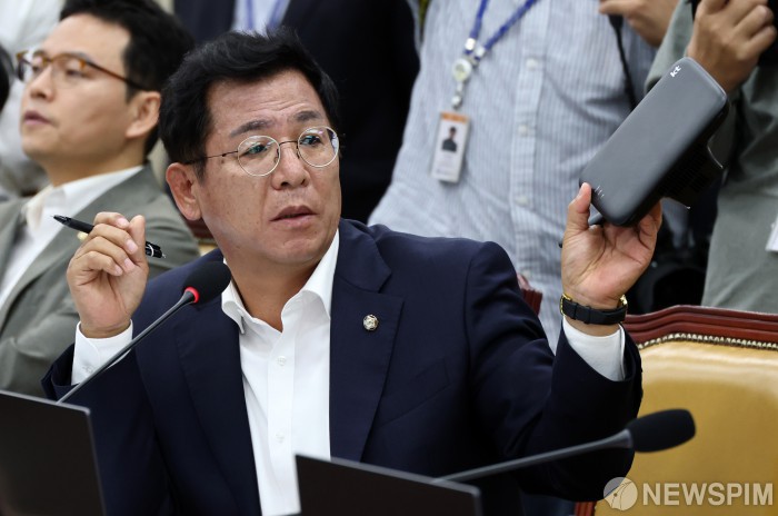 [서울=뉴스핌] 최지환 기자 = 이상휘 국민의힘 의원이 24일 오전 서울 여의도 국회 과학기술정보방송통신위원회에서 열린 통신·금융 대규모 해킹사고에 대한 청문회에서 KT의 펨토셀 관리 부실을 질책하고 있다. 2025.09.24 choipix16@newspim.com