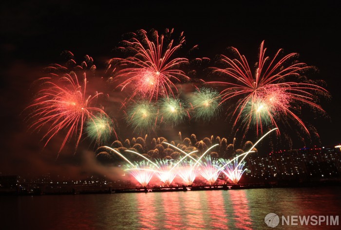 [서울=뉴스핌] 이길동 기자 = 27일 밤 서울 영등포구 여의도 한강공원에서 열린 한화와 함께하는 서울세계불꽃축제 2025에서 화려한 불꽃들이 밤 하늘을 수놓고 있다.2025.09.27gdlee@newspim.com