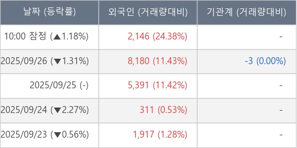 [표] 외국인ㆍ기관 순매매량 (단위 주)