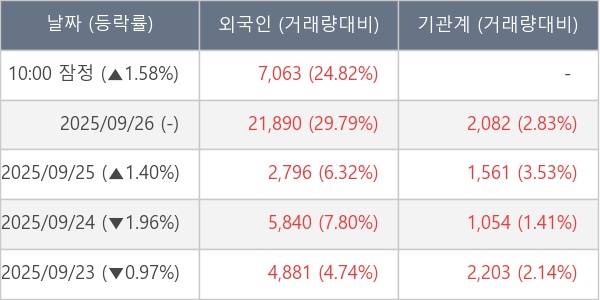 [표] 외국인ㆍ기관 순매매량 (단위 주)