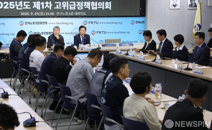[서울=뉴스핌] 이형석 기자 = 정청래 더불어민주당 대표가 29일 오전 서울 여의도 한국노총에서 열린 2025년도 민주당 - 한국노동조합총연맹 제1차 고위급정책협의회에서 인사말을 하고 있다. 2025.09.29 leehs@newspim.com