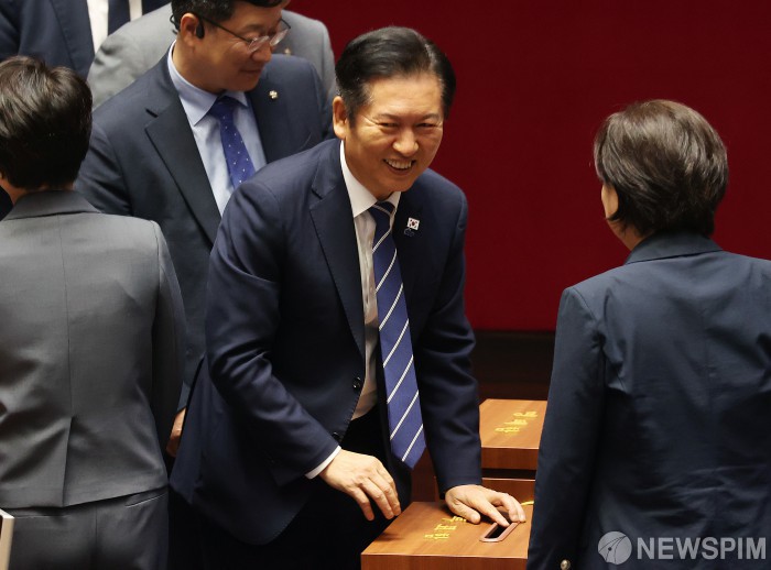[서울=뉴스핌] 정일구 기자 = 정청래 더불어민주당 대표가 29일 오후 서울 여의도 국회에서 열린 제429회 국회(정기회) 제9차 본회의에서 '국회에서의 증언·감정 등에 관한 법률 일부개정법률안(대안)에 대한 무제한토론 종결동의의 건' 투표를 하고 있다. 2025.09.29 mironj19@newspim.com