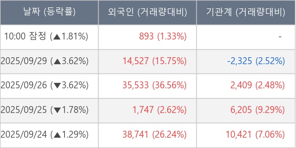 [표] 외국인ㆍ기관 순매매량 (단위 주)