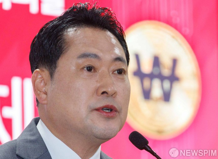 [서울=뉴스핌] 윤창빈 기자 = 장동혁 국민의힘 대표가 30일 오전 서울 여의도 국회 의원회관에서 권영세 국민의힘 의원 주최로 열린 디지털 금융 혁신의 도전 : 원화 스테이블코인 도입 쟁점과 바람직한 제도적 체계 토론회에서 축사를 하고 있다. 2025.09.30 pangbin@newspim.com