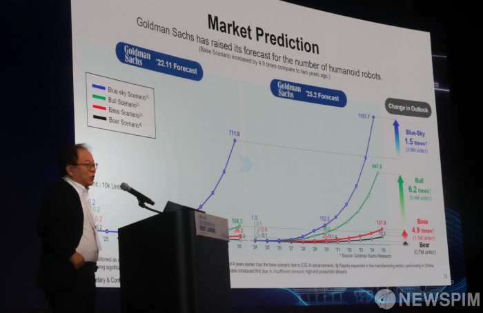 [서울=뉴스핌] 양윤모 기자 = 오준호 삼성전자 미래로봇추진단장이 30일 서울 강남구 삼성동 코엑스 그랜드볼룸에서 개최된 ‘제24회 휴머노이드 로봇 국제 컨퍼런스’행사에 참석 프레젠테이션을 하고 있다. 2025.09.30 yym58@newspim.com