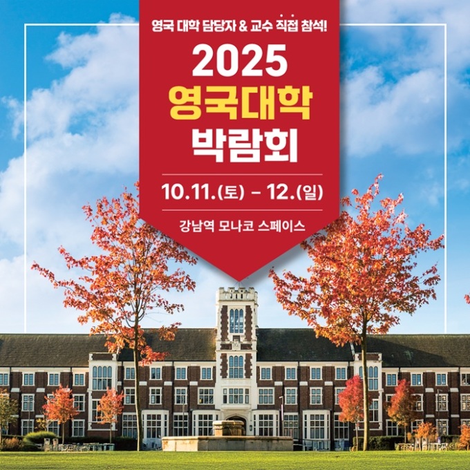 [서울=뉴스핌] 오경진 기자 = UKEN 유켄영국유학은 다음 주 10월 11일과 12일, 강남역 모나코 스페이스에서 '2025 영국대학박람회'를 개최한다.