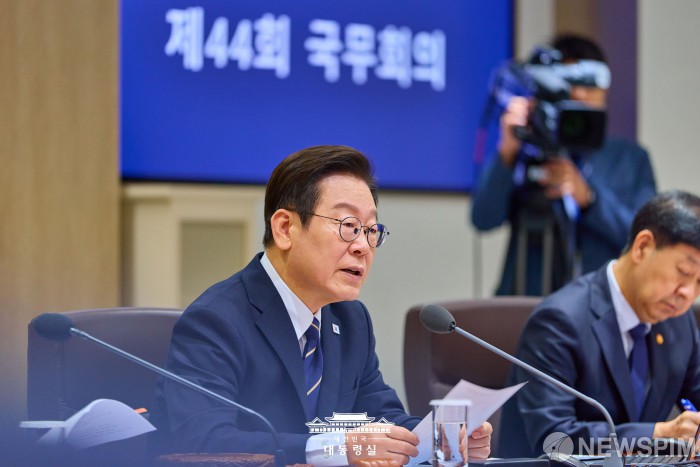 [서울=뉴스핌] 이재명 대통령이 30일 서울 용산구 대통령실에서 열린 제44회 국무회의에서 모두발언을 하고 있다. [사진=대통령실] 2025.09.30 photo@newspim.com