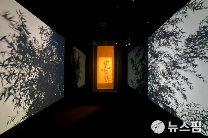 [서울=뉴스핌] 간송미술관 광복80주년기념전 중 2부 '탄은, 대나무로 세상을 울린 한 사람' 전시장에 설치된 탄은 이정의 '풍죽' [사진=이영란 미술전문기자] 2025.09.30 art29@newspim.com