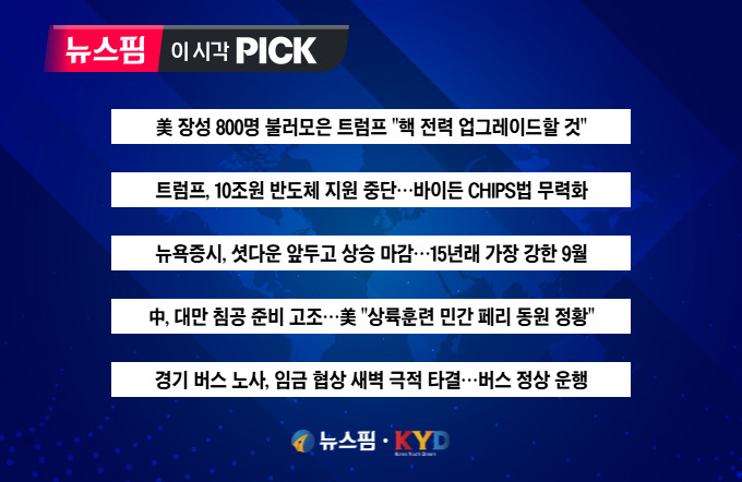 [뉴스핌 이 시각 PICK] 트럼프 "핵 전력 업그레이드할 것" 外