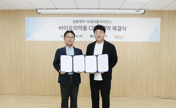 [서울=뉴스핌] 이나영 기자= 경동제약은 바이오의약품 위탁개발 및 분석(CDAO) 전문기업 프로티움사이언스와 바이오시밀러 위탁개발을 위한 포괄적 협력 계약(MSA)을 체결했다고 1일 밝혔다.
