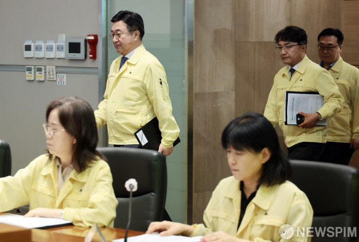 [서울=뉴스핌] 이길동 기자 = 윤호중 중앙재난안전대책본부장(행정안전부 장관)이 1일 오전 서울 종로구 정부서울청사에서 열린 국가정보자원관리원 행정정보시스템 화재 관련 중앙재난안전대책본부 회의에 참석하고 있다. 2025.09.30gdlee@newspim.com