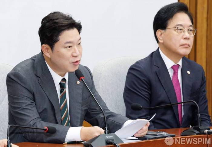 [서울=뉴스핌] 윤창빈 기자 = 진종오 국민의힘 의원이 1일 오전 서울 여의도 국회에서 열린 상임위원장 및 간사단 회의에서 녹취록과 관련해 발언하고 있다. 진 의원의 녹취록은 더불어민주당 소속 서울시의원이 내년 지방선거 서울시장 경선에서 김민석 총리를 지원하기 위해 종교 신도를 활용하려했다는 내용이다. 2025.10.01 pangbin@newspim.com