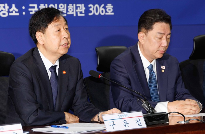 [서울=뉴스핌] 윤창빈 기자 = 구윤철 부총기 겸 기획재정부 장관이 30일 오전 서울 여의도 국회 의원회관에서 열린 경제형벌 민사책임 합리화TF 당정협의에서 모두발언을 하고 있다. 2025.09.30 pangbin@newspim.com