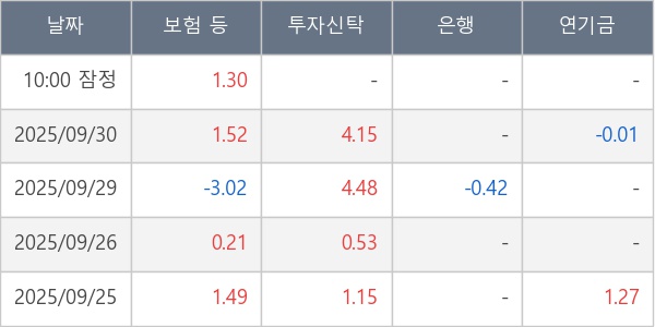 [표] 주요 기관별 순매매량 (단위 만주)