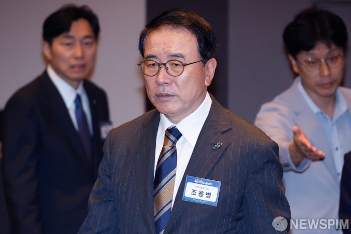 [서울=뉴스핌] 류기찬 기자 = 조용병 은행연합회장이 1일 오전 서울 중구 한국프레스센터에서 열린 ‘새도약기금 출범식’에 참석하고 있다. 2025.10.01 ryuchan0925@newspim.com