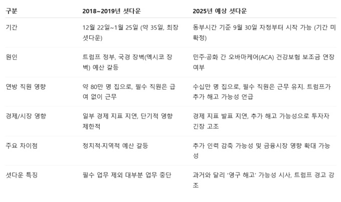 [시드니=뉴스핌] 권지언 특파원 = 트럼프 집권 1기 셧다운과 이번 셧다운 비교 2025.10.01 kwonjiun@newspim.com