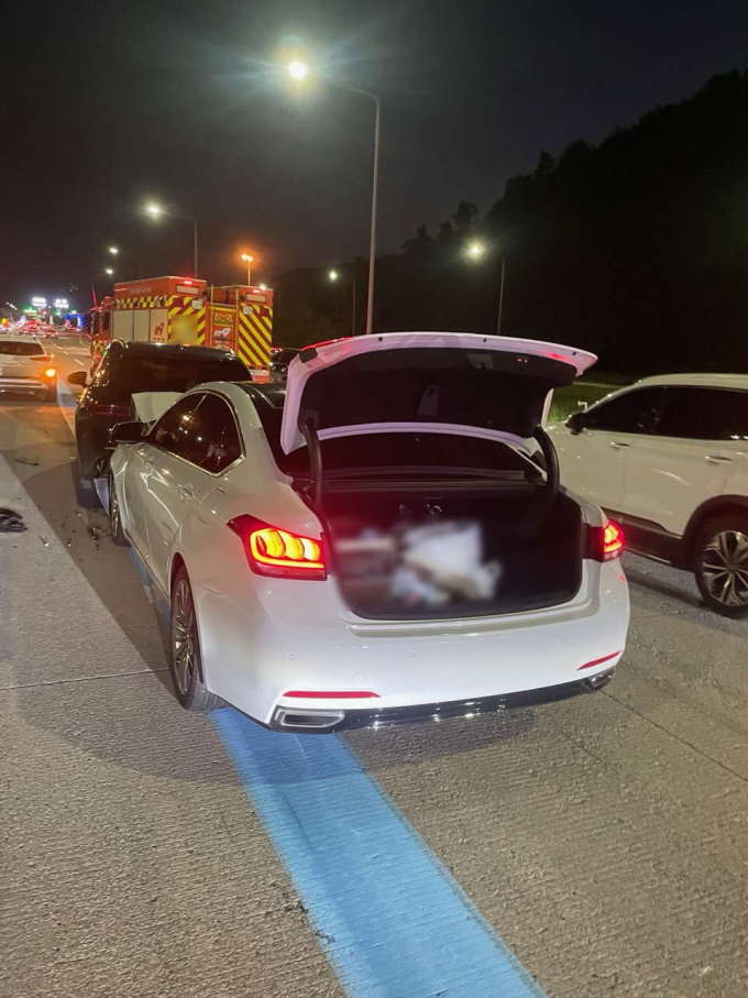 9월 30일 오후 6시 30분께 부산울산고속도로 해운대 방향에서 차량 4대가 연쇄 추돌했다. [사진=부산경찰청] |