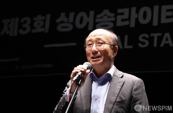 [서울=뉴스핌] 정일구 기자 = 유근석 뉴스핌 사장이 1일 오후 서울 동대문구 콘텐츠문화광장 스테이지66에서 열린 제3회 싱어송라이터 경연대회 '히든스테이지(HIDDEN STAGE)' 결선에서 인사말을 하고 있다. '히든스테이지'는 종합뉴스통신사 뉴스핌과 감엔터테인먼트가 주최·주관하고, 문화체육관광부·서울특별시·한국콘텐츠진흥원·한국음악저작권협회가 후원한다. 2025.10.01 mironj19@newspim.com